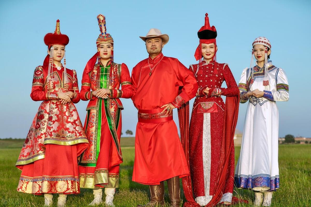 由于蒙古族共有28个部落,其服饰也存在一定差异。蒙古族男人穿着主要以蒙古长袍为主,腰间多佩戴刀子、火镰等饰物。女人则以蒙古袍、长裙为主。