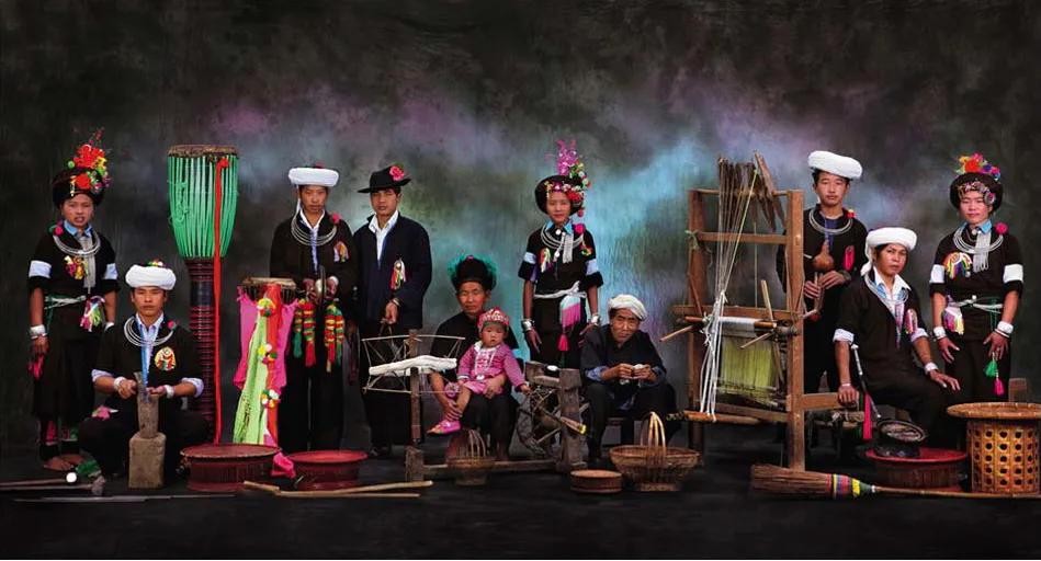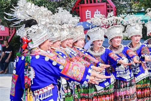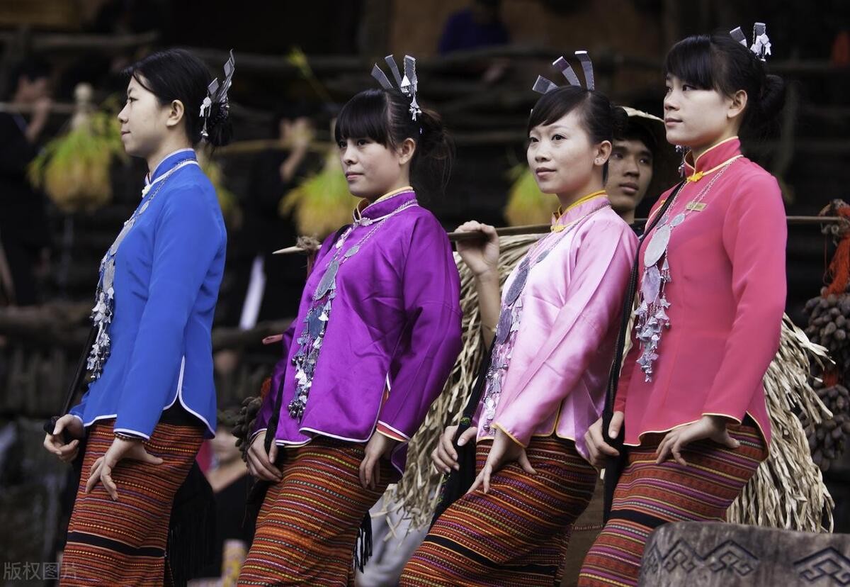 仡佬族的服饰以绚丽多彩为特点,无论男女皆着裙装,男子为短裙,女子为长裙。