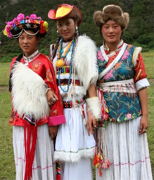 藏族服饰因为地域不同,服饰类型也有着较大区别,是目前我国服饰种类最多的民族。由于处于高原寒冷地区,服饰多为毛料、皮革制作而成。藏族男人的服饰主要分为劳动服、礼服和武士服,配饰有嘎乌和斜插腰刀等。藏族女人头部多佩戴狐皮帽,身穿貂皮镶边的氆氇或毛呢楚巴。