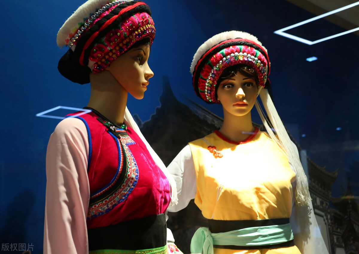 白族男女普遍崇尚白色,以白色衣服为主。男子喜缠白色或蓝色头巾,女子多穿白上衣、红坎肩,头戴特色头帽、头巾。