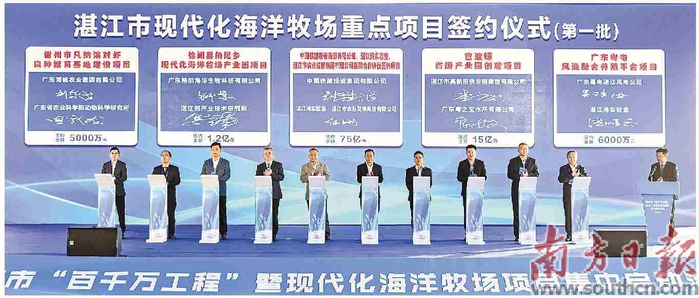 值得关注的是,湛江农发集团与省农业基金公司合作成立全省首支现代化海洋牧场基金,基金规模超50亿元。今年年底前计划推动设立1-2个子基金,围绕产业链关键环节进行投资,并与广东南油控股等6家企业对接基金项目,积极引进优质企业项目落地。