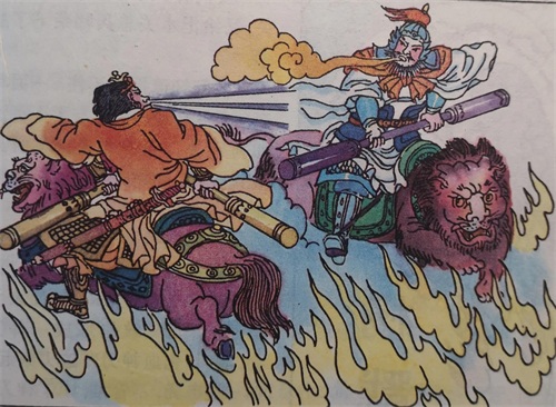 我这暴脾气一下子就上来了,拿着铁棍就朝姜子牙劈面打来。姜子牙用剑架隔,可他根本就捞不着我,我身子小,灵活得很。往来几个回合后,我又祭起捆仙绳,将姜子牙捆下骑来。我率兵忙去捉拿姜子牙,无奈周营将官太多,他们奋勇冲出,又把姜子牙给抢回城里去了。