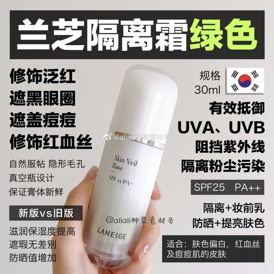 ★如果你轻微敏感,皮肤泛红,有红血丝,或者是痘痘肌,那么绿色隔离是你不二的选择。绿色能够遮盖红血丝,痘痘以及泛红现象,改善皮肤,使你的肤色更加健康自然。