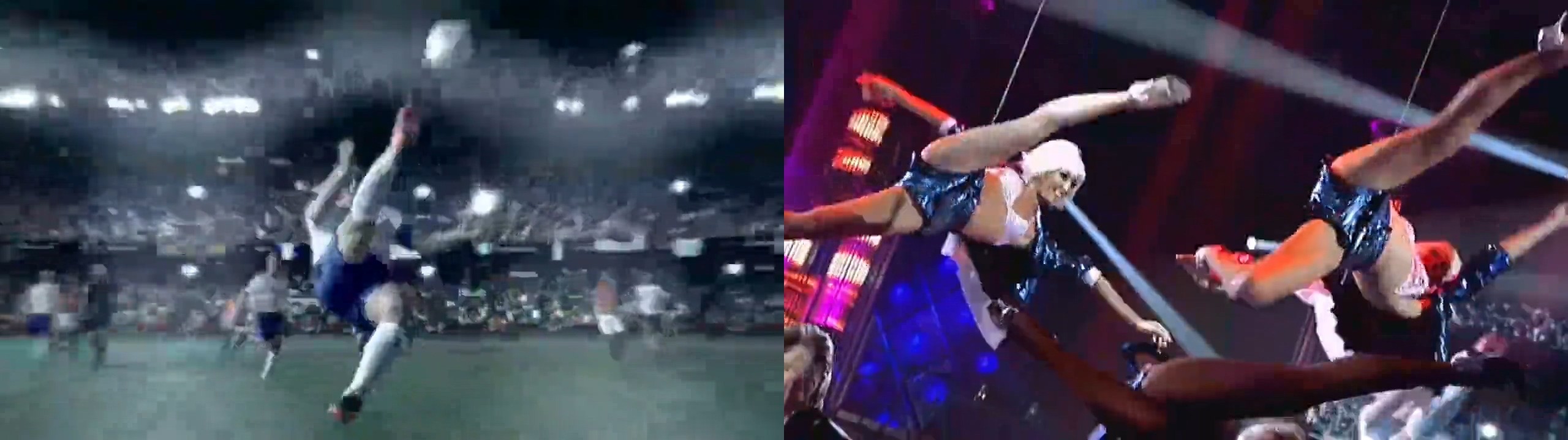 意大利的后卫卡纳瓦罗飞奔而来,一个漂亮的倒钩把球救出险境。此时轮到全意大利开始欢庆,倒钩的动作在舞台大屏幕上反复播放,前面是各种美女在钢管上模拟这个动作。