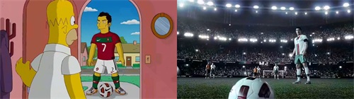 C罗的故事也挺有意思,他的停球过人突破给他带来了各种荣誉,香车美女,甚至还有动画片辛普森一家的爸爸帮他开门。人们在广场上为他竖起了一座银色的雕像。然而这一些都取决于他是否能踢进这个任意球。