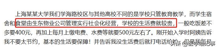 由于水电费是一整个宿舍的,所以想省也省不了多少,只能是从400元的饭钱里挤压,但再怎么省也还是不够。