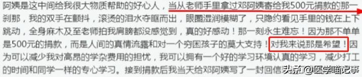 在第一次收到这笔钱时,他还特意写了一封感谢信,用来表达自己的感动,信中写道这500块钱不单单是捐款,更是对自己的一种希望,一种摆脱贫困的希望。
