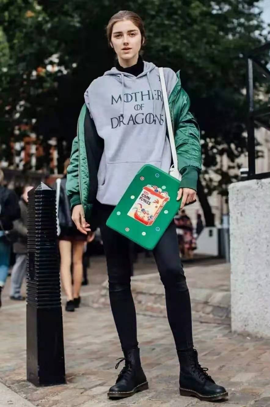 秋冬天冷穿的多,想藏肉显瘦不臃肿必然要考虑工装裤了。不用担心,万能的马丁靴与工装裤当然也可以组CP。大家在穿着时可以选黑色工装裤,将宽松的裤脚直接塞进靴筒绑起来,就可以利用工装裤自带的宽松与线条打造出街头潮流感,再来一件同色系棒球服酷到不行,all balck的搭配绝对让你气场强到炸裂。