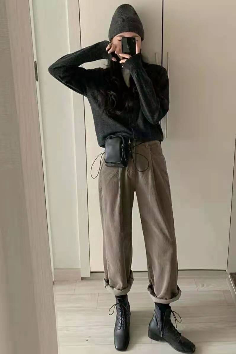上班族必备的奶奶裤和马丁靴搭配也能有不错的效果。奶奶裤藏大腿肉又能显腿直,加上马丁靴的加成,嫩弥补奶奶裤不显腿长的小缺点。大家在穿着时,可以将裤脚挽起卷几圈,露出靴筒,这样更能显瘦显腿细。在这类搭配中,大家需要关注的就是裤子颜色与马丁靴的颜色,可以是同色系或者相近色,但不要色差太大,风格不合。