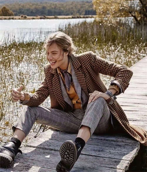 喜欢英伦复古风的也不要放弃马丁靴。一条简约又高级的格纹裤就能让你瞬间get到英伦风的精髓。格纹裤虽然没有其他裤子显瘦显高,但有着其他裤子无法比拟的强烈风格,这样的单品很容易穿出风格,不会出错。在穿着时,大家尽量选择与马丁靴颜色相同的格纹,上装可以简单搭配白色或者黑色这种百搭上装,简单又高级,英伦复古风绝对没问题。