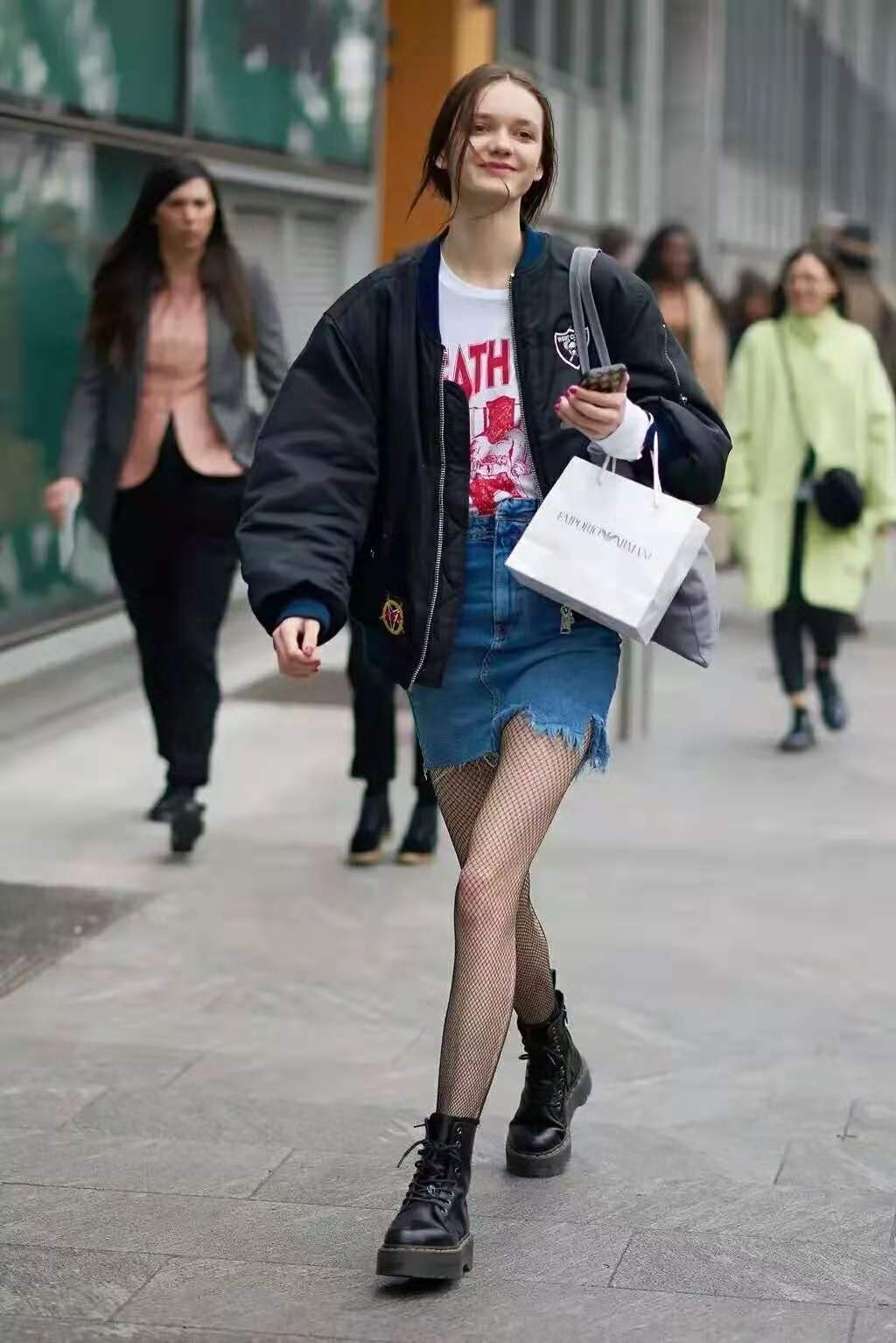 示范八:马丁靴+牛仔裙
