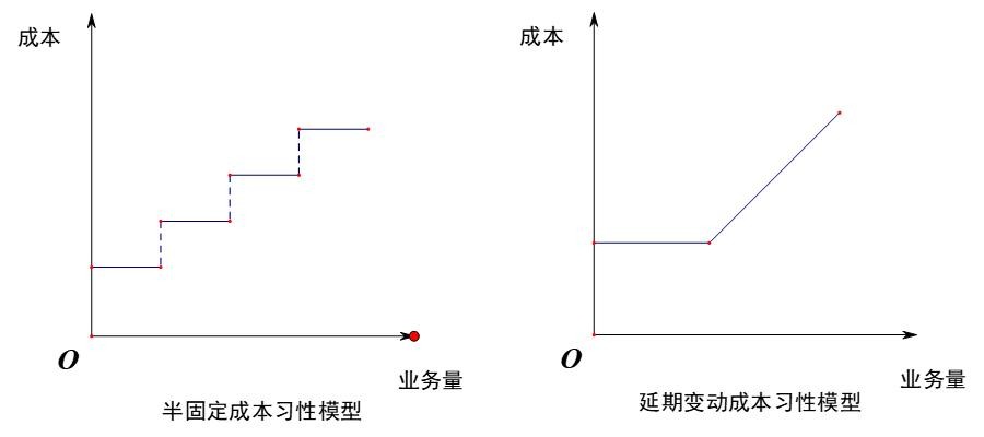 混合成本兼有固定与变动两种性质,可进一步将其细分为半变动成本、半固定成本、延期变动成本和曲线变动成本。