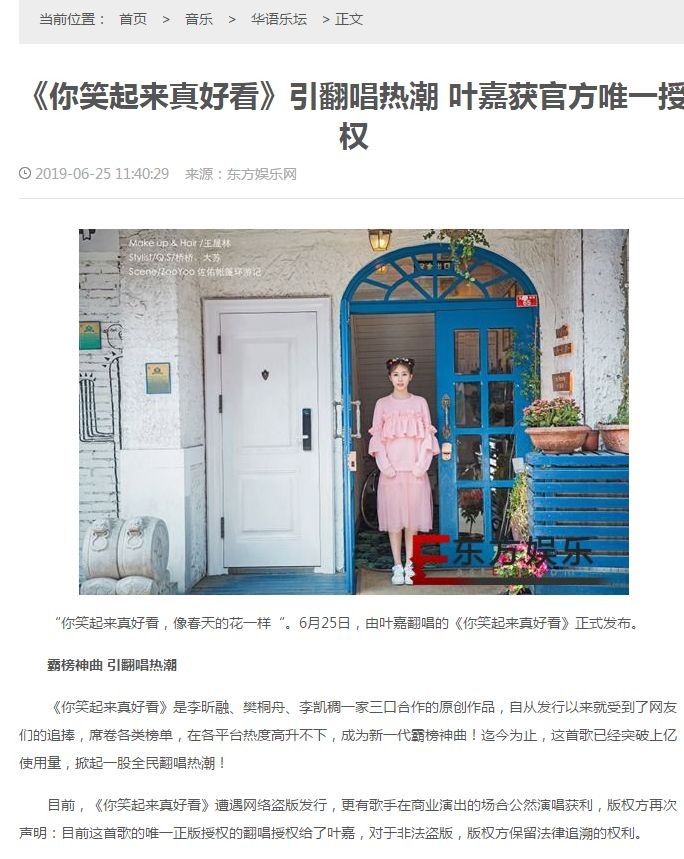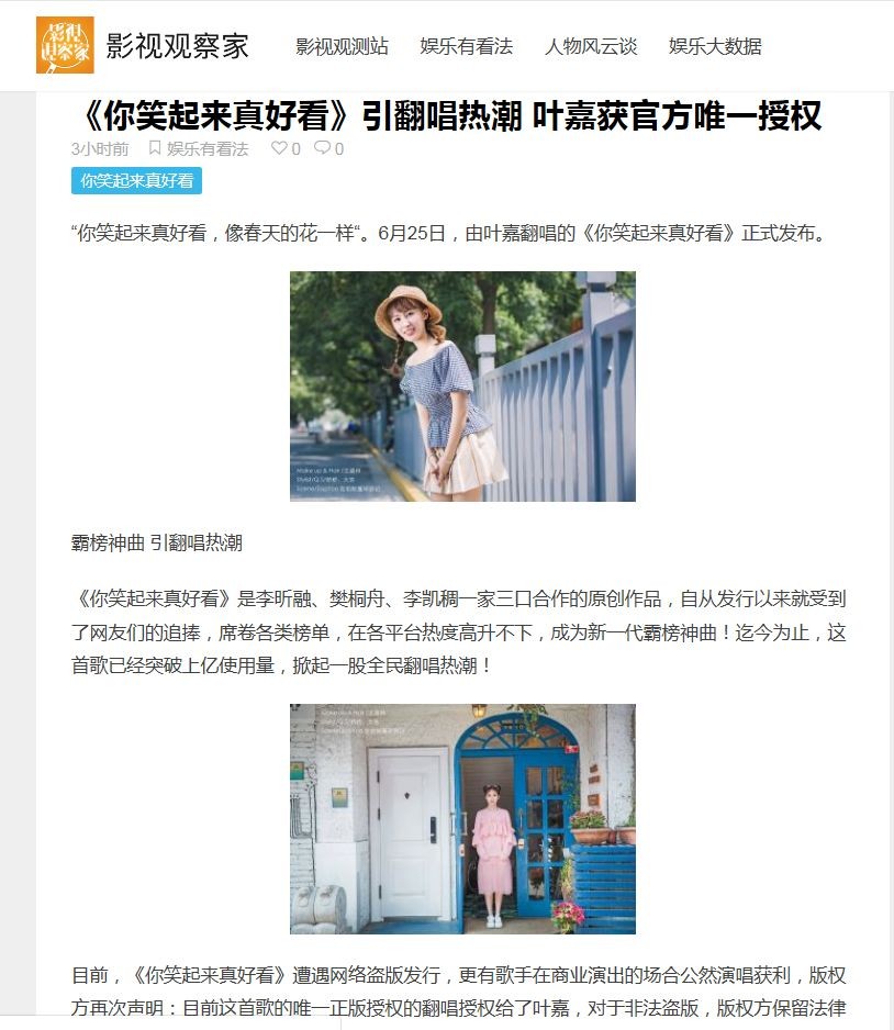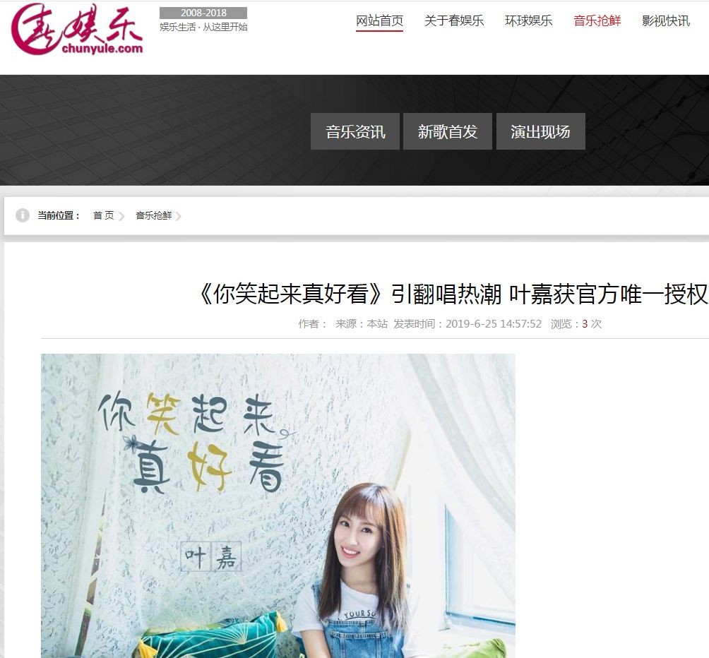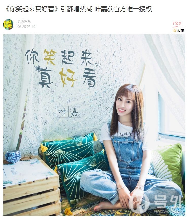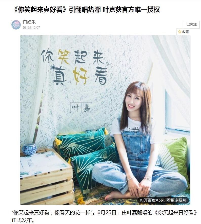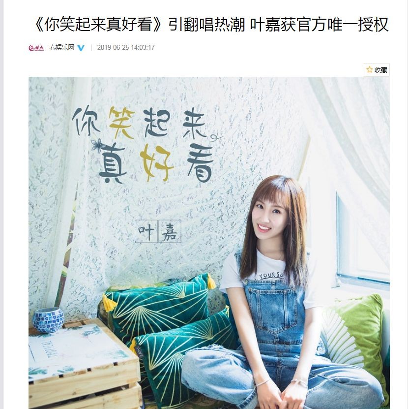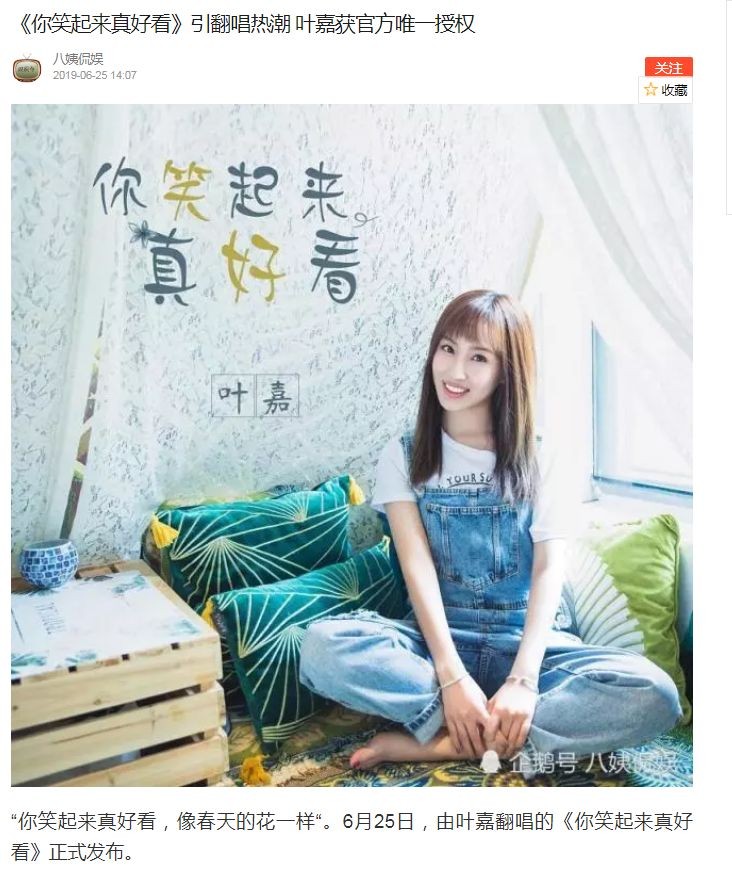由叶嘉演唱的成人版《你笑起来真好看》正式发布