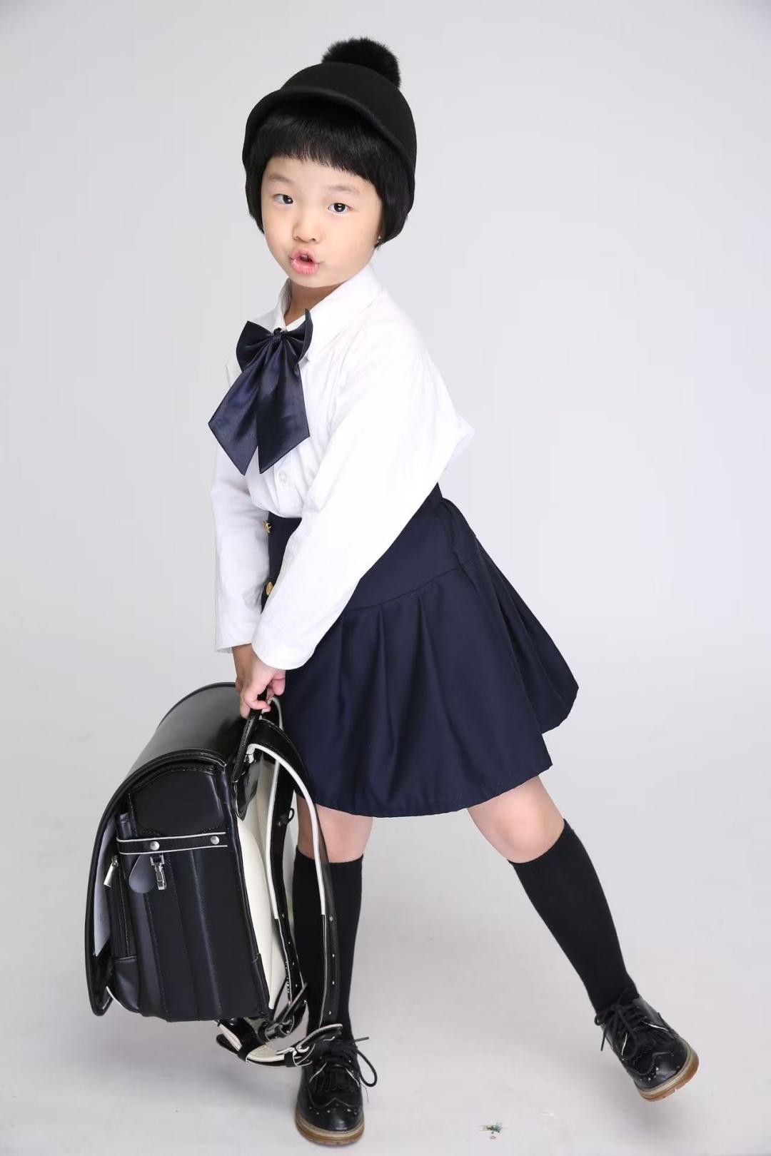 小女孩戴着帽子和口罩