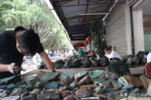 姐告市场外围摊位,以原石居多