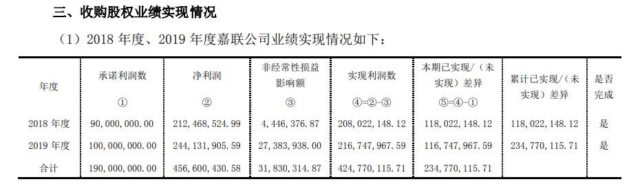 根据新国都财报显示,嘉联支付2018年度实现利润数 2.08亿元,2019年为2.16亿元,累计实现利润数4.24亿元,均超额完成业绩承诺。