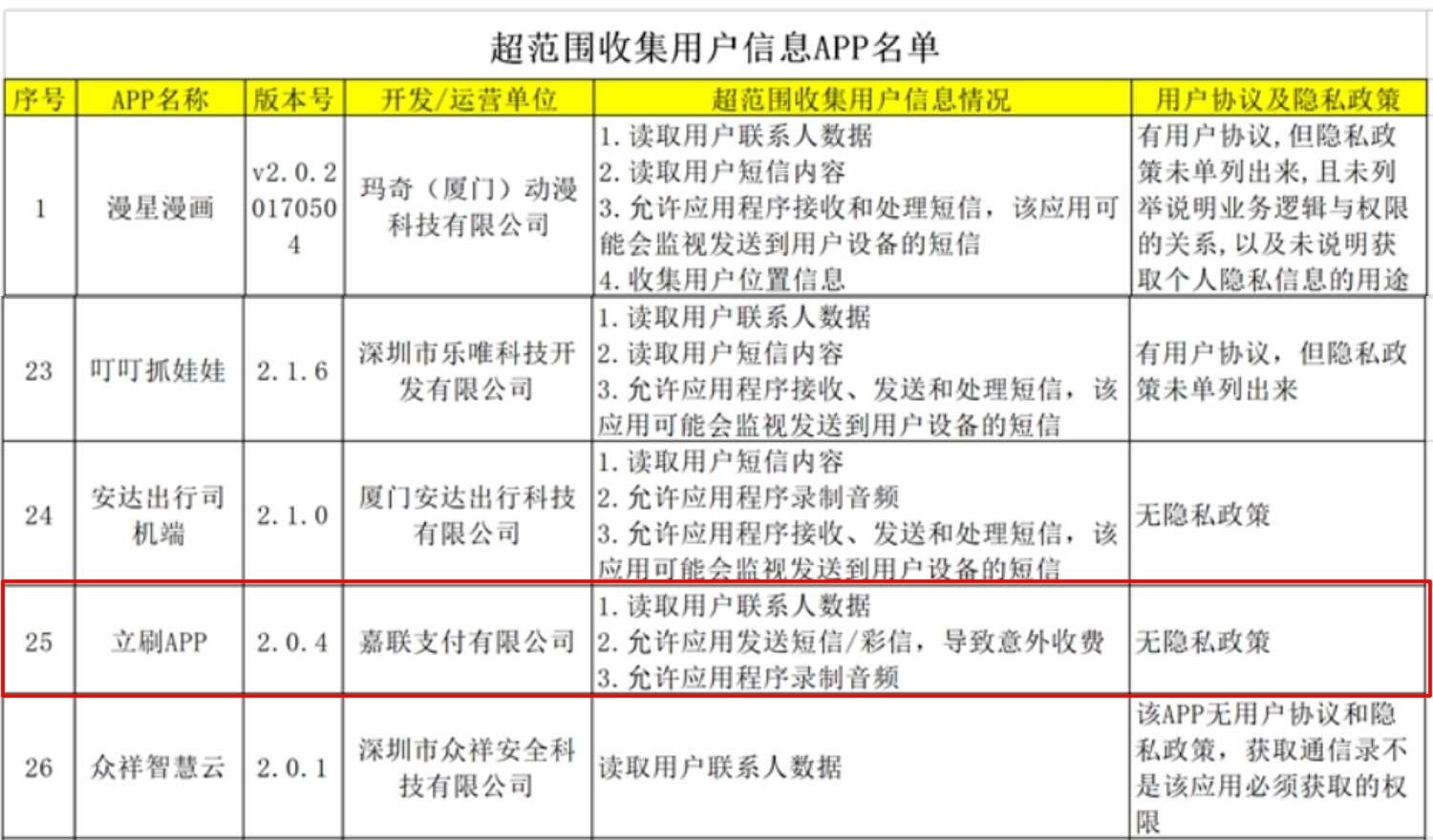 收单业务虽在不断攀升,然今年8月,嘉联立刷APP被广东省公安厅点名,指出存在超范围读取用户联系人数据、允许应用发送短信/彩信,导致意外收费,允许应用程序录制音频等突出安全问题。