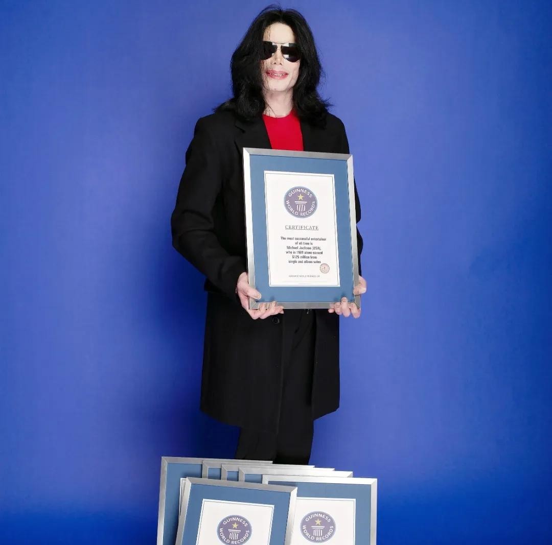 迈克尔·杰克逊在 1958 年 8 月 29 日,于美国印第安纳州加里市的一个非裔美国工人阶级家庭出生了。他是家里的第七个孩子。谁能料到,这个来自普通家庭的小孩,日后竟会成为全球巨星呢。1964 年时,小小的他就和兄弟们组成了杰克逊五人组,就此踏入演艺圈,开启了他们的音乐旅程。那时的他们,在各类场合进行表演,一点点地积攒名气。到了 1971 年,迈克尔·杰克逊决定单飞,这可是他迈向超级巨星极为关键的一步。之后他就如同被幸运眷顾一般,1979 年推出专辑Off The Wall,让人们开始真正留意到他独特的音乐才华。不过真正让全世界都为之疯狂的,当属 1982 年的那张Thriller专辑,这张专辑卖得超级火爆,成为了史上最畅销的专辑,销量高到吓人。随后在 1987 年的Bad、1991 年的Dangerous以及 1995 年的History等专辑,也一次次地把他的音乐事业推向新的高峰。他的每一张专辑都好似一颗威力巨大的炸弹,在音乐界引发极大的轰动,吸引着无数粉丝为他痴迷不已。