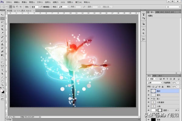 将“圆形”图层的混合模式设置为“柔光”,所有操作完毕,最后效果如下所示: