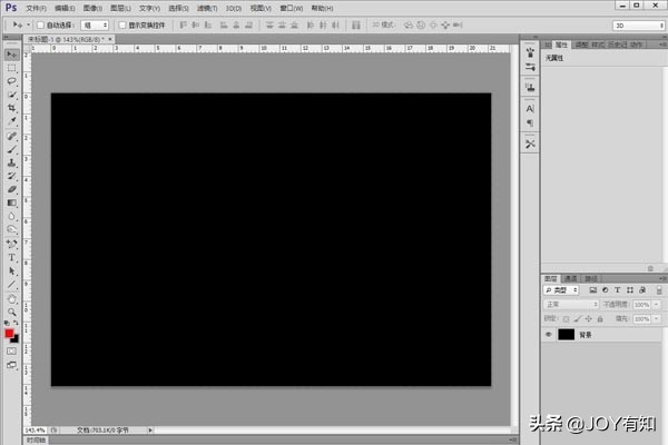 首先在Photoshop中新建文档,并且将其填充为黑色。如图所示: