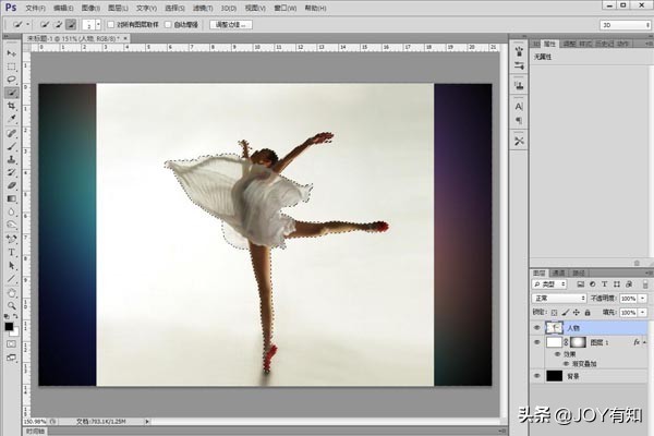 将“图层1”移动到“人物图层”下方,之后用工具箱中的“快速选择工具”将人物进行选择。如图所示: