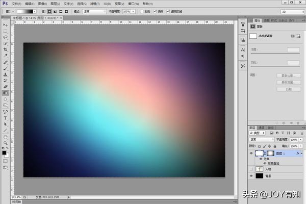 新建“图层1”图层,将其填充为白色,之后点击“图层”面板底部的“图层样式”按钮,选择“渐变叠加”,在弹出来的对话框中,设置自己需要的渐变颜色和其他参数之后,单击“确定”按钮。如图所示: