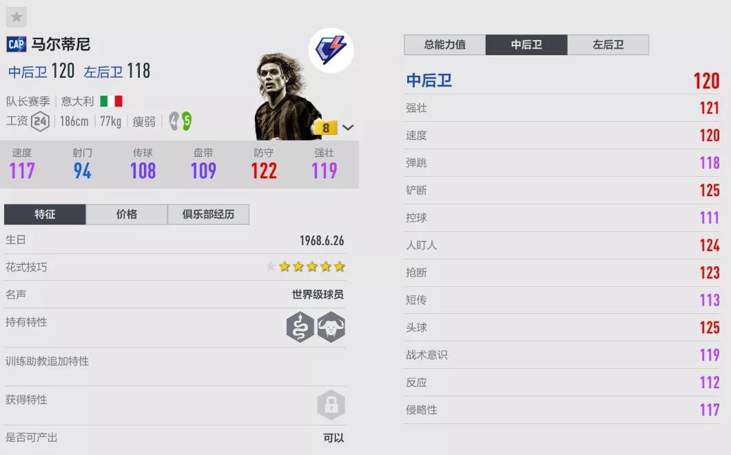 CAP马尔蒂尼是回追中卫的佼佼者,在直塞版本里,他的表现可以大幅提升防线的容错率,减少对方单刀和其他得分机会。不仅在意大利和AC米兰套,对明星套来说,马尔蒂尼也是必不可少的核心球员。