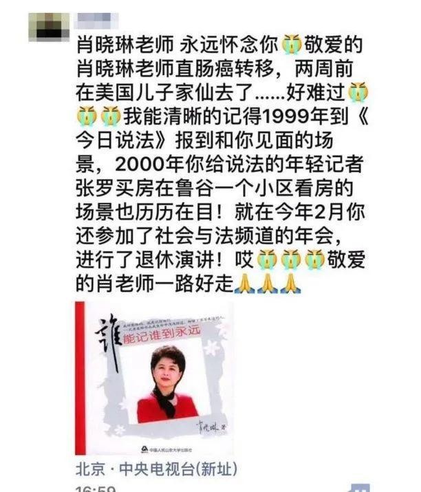 可时间不等人呐,这个愿望最后成了泡影。她在美国的时候,盼着天气暖和花开的时候,想带儿子回来瞅瞅,拜访一下央视的老朋友们,结果再也没机会了。