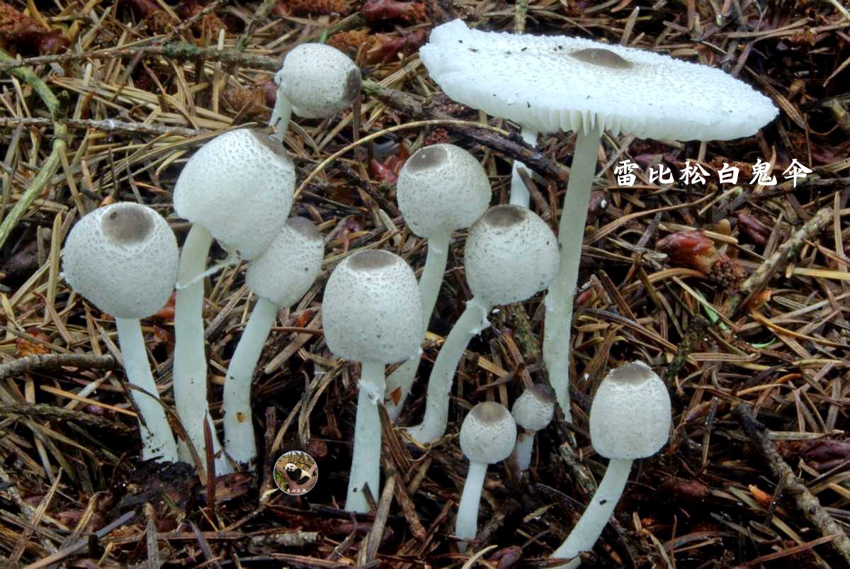 1.4 雷比松白鬼伞。常隐身在草地中,长像有点娇小玲珑,菌盖布满红褐色细鳞, 另外菌柄透白,常残留有膜质菌环。