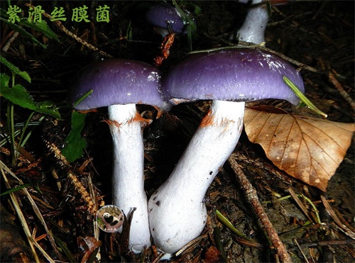 1.2 紫滑丝膜菌。伞布带有神秘的青紫色泽,菌柄有丝膜状的菌环,味道相当美味可口。