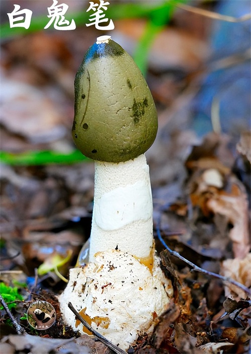 2.2 白鬼笔。幼时与竹荪很难分辨,成熟时只是没有菌裙而已, 洁白的海棉状菌柄,顶有钟形菌盖、覆有暗绿色黏而臭的孢子液,食药用。