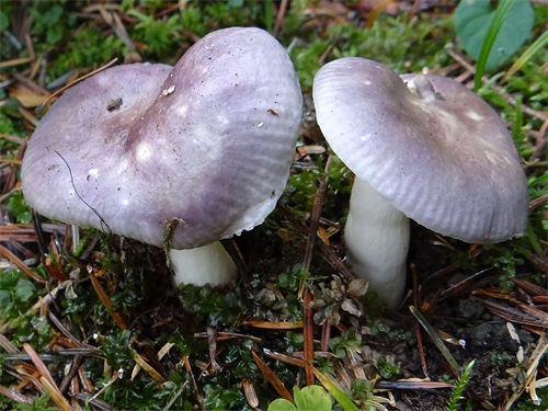 3.2 空柄红菇。常在高海拔铁杉林下生长,紫丁香色。
