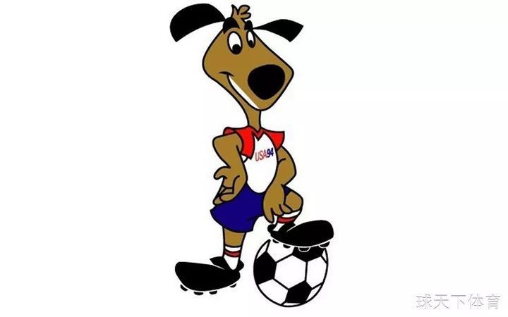 1994年美国世界杯吉祥物小狗射手(Striker)身穿代表美国国旗颜色的红白球衣、蓝球裤和红白间条球袜。