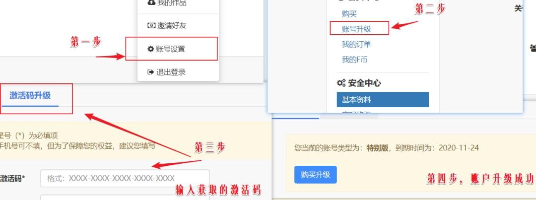 获取到激活码后如何进行账户升级呢?请看下面操作。