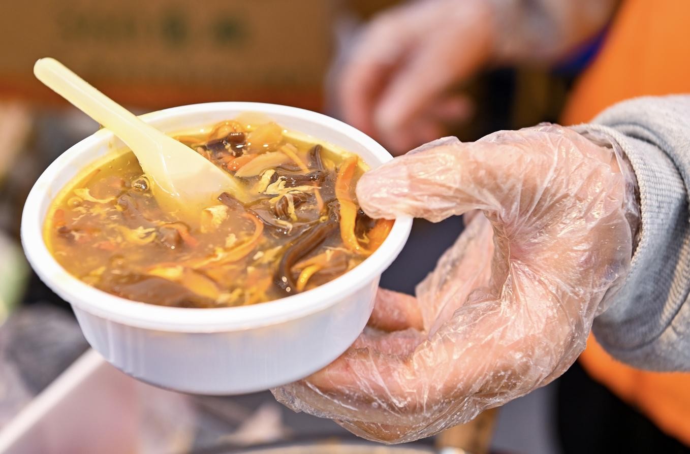 “广府味荔湾品”摊位的店长介绍:“天气冷了,我们特意准备了暖心暖胃的糯米饭、羊杂汤、猪脚姜、鲍汁鸡脚,深受食客欢迎。羊杂汤曾在一个上午售罄,超出了我们的预料。”