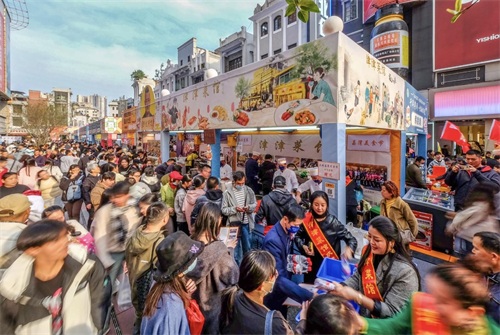 “千年粤闽 味融非遗”2024年广州荔湾美食文化节已于12月22日在上下九广场开幕,上下九熙熙攘攘的场景再现。