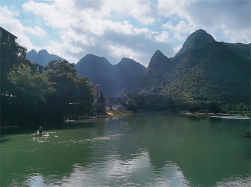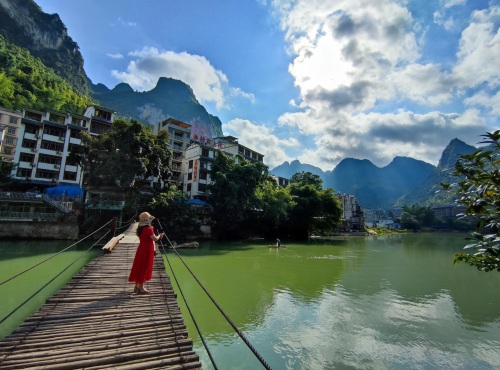 巴马长寿村背倚青山,四面环山,山环水绕,优美的盘阳河犹如玉带一般在山间蜿蜒盘旋,村内小桥流水,古老的石拱桥诉说着岁月的沧桑。
