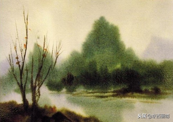 树影及岸边同样用笔尖柔边法处理。