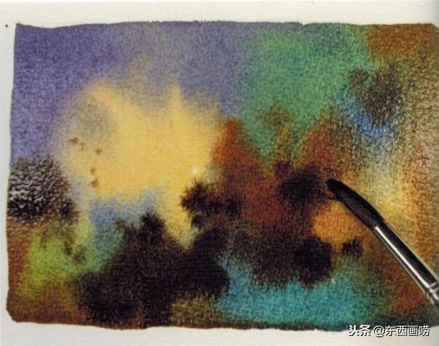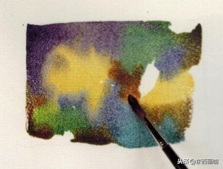 待一块渲染色块完全干透后 ,再一次打湿进行渲染,重复此程序。