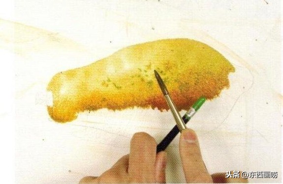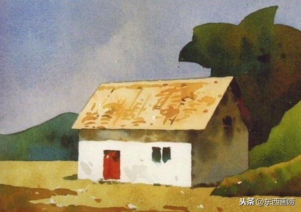 带水接色法就是随时保持百分之百的水分来填色块,也是透明水彩最基本的平涂技法。