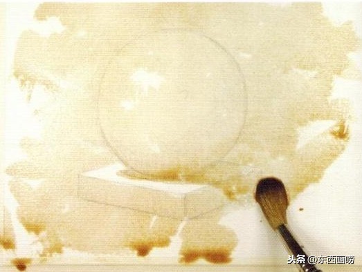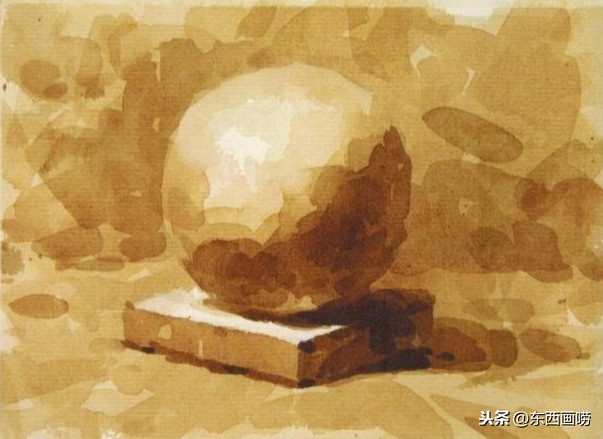 只需保留球体的最亮点与底座的亮面,其余皆用黑赭轻松画上第一层底色。