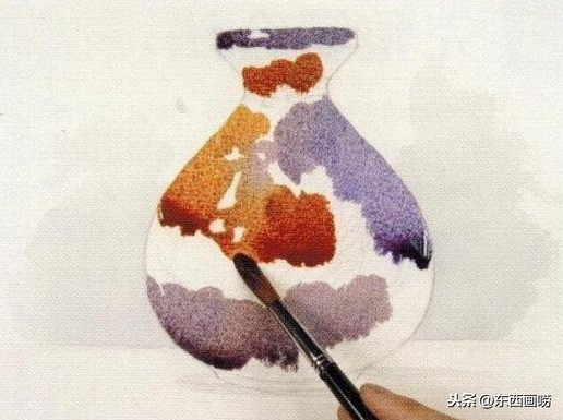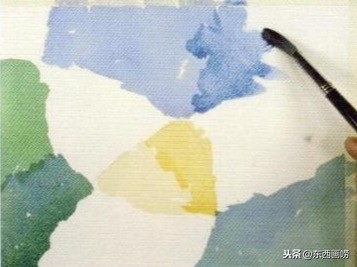 待一個色块完全干透时,再紧依著边缘,接合另一個色块。此法需要画出清晰的铅笔轮廓。通常适用于边缘明确的静物画,或是表現硬边色块风格的抽象或或半具象水彩画。