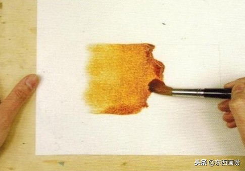 沾满100%调好的稀释颜料,用笔尖从左上角开始描边。