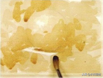 在湿润的底色尚未干燥之前,继续在色块上面加笔,直到即将干燥为止。加笔時要注意笔中的含水量,与画面底色的湿度是否接近。
