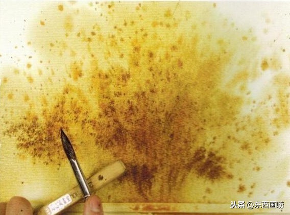 通常先敲浅色,再敲重色;先敲大点,再敲小点。画的含水量要适当,水分过多容易形成水渍,水分過少则无法喷溅。