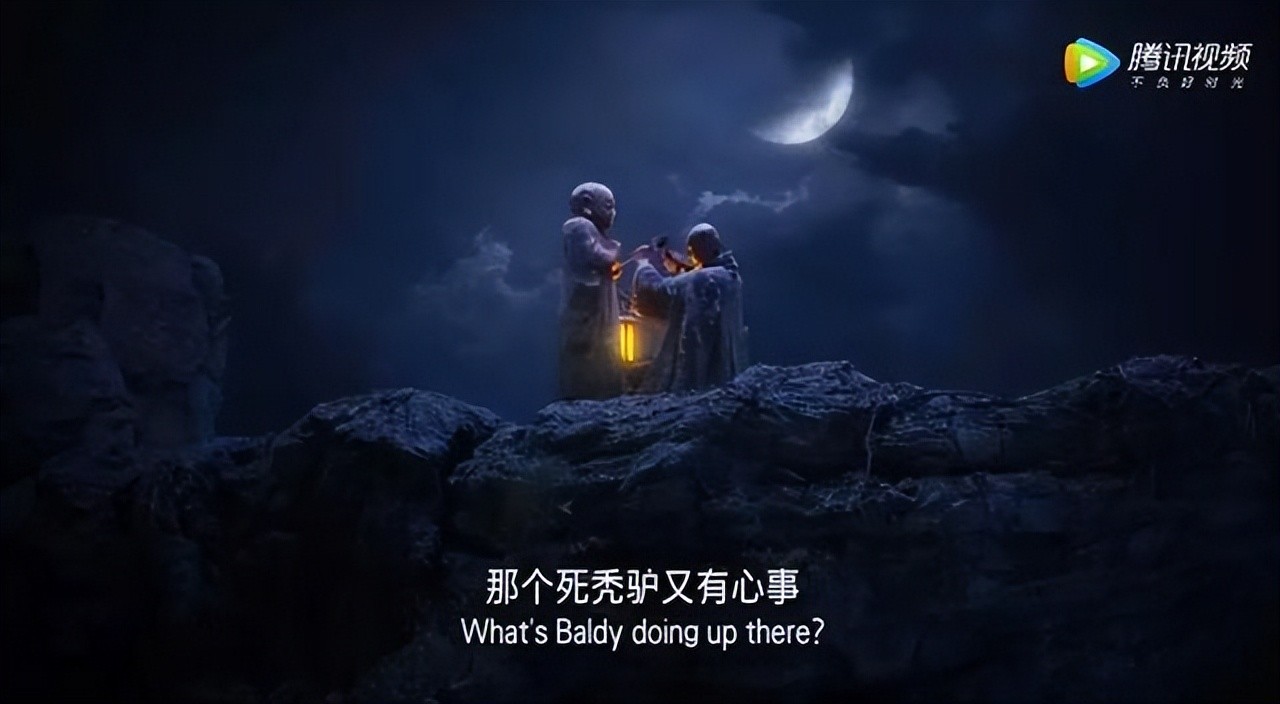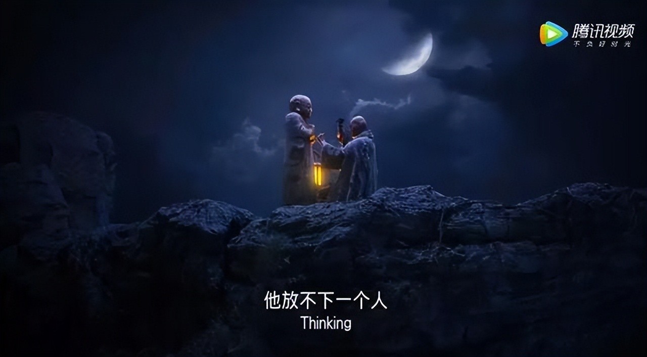 而在续集《西游伏妖篇》中,唐僧独自一人在月光下一锤一锤地刻着佛像。