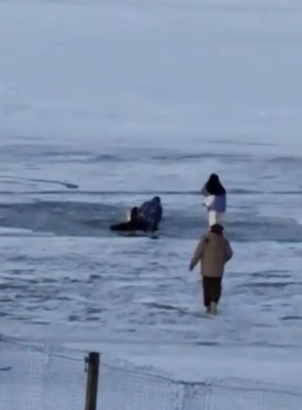 林先生和女友在当天的散步中目击到这起惊险事件,他们像电影中的主角一样,扮演起了见证者的角色。那名男子带着两个女孩在冰面上漂移,纵横驰骋,仿佛展示着追逐极限的胆量和勇气。然而,命运会在不经意间玩弄人,车辆的失控让这场热血激情的表演转变成了一场生死之间的考验。