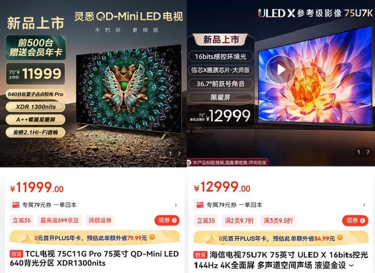 同尺寸更高配的TCL Mini Led C11G Pro要比HX ULED 75U7K更便宜