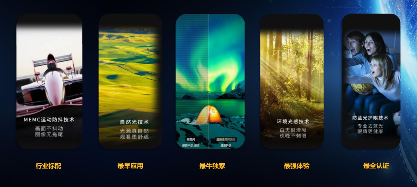 当然,TCL电视全面的护眼技术。显像管技术的CRT电视就有了行业最先进的专利技术自然光,模拟太阳光的发射原理,讲传统的线偏振光转换为圆偏振光,眼睛接触面积变大,观影不疲劳,专利的混合调光,DC高亮画面无频闪,PWM低亮画面场景不丢失,当然还有常规的MEMC运动防抖,环境光感应,防蓝光等主流的护眼技术,用户观影更舒适缓解眼部疲劳。
