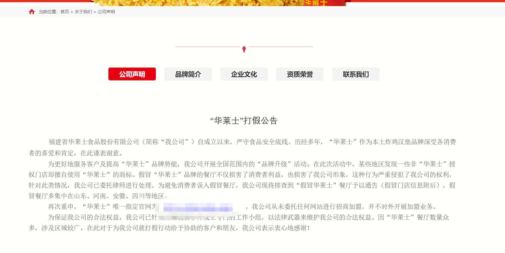 从公司声明就能看出华莱士没有委托任何网站进行招商加盟,并且也不对外开展加盟业务。